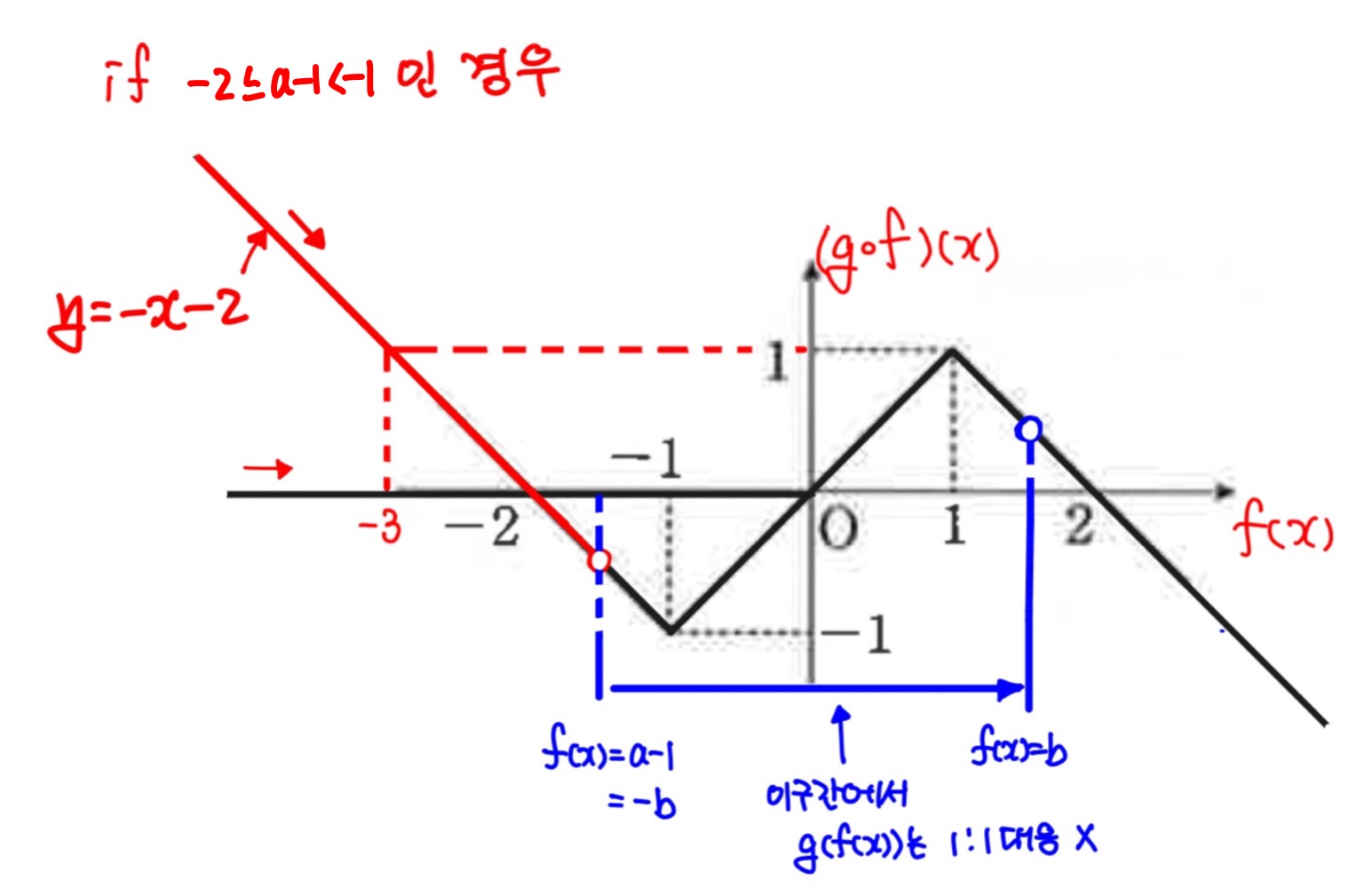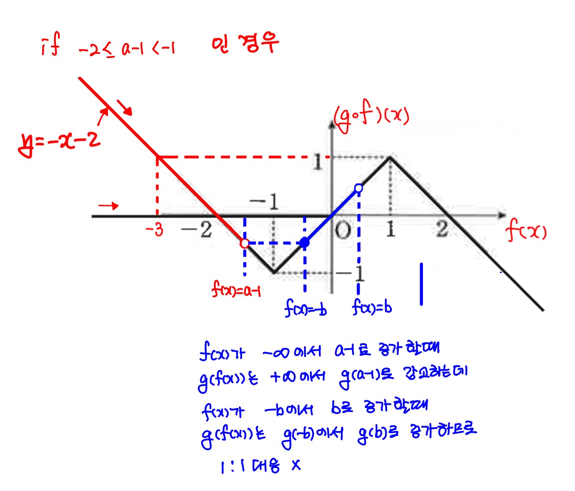 두 번째 구간에서 g(f(x))가 일대일 대응이 아니어서 탈락!